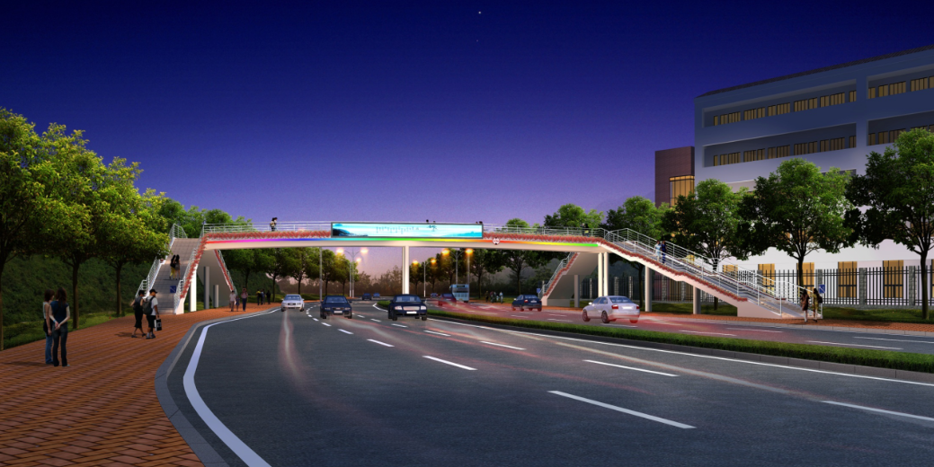 水韻華都人行天橋位于龍騰路水韻華都南側(cè),橫跨龍騰中路。橋長34.4米,寬3.6米,下部結(jié)構(gòu)采用鉆孔灌注樁和擴(kuò)大基礎(chǔ),上部結(jié)構(gòu)采用鋼結(jié)構(gòu),項目總投資約400萬元。項目于2016年4月開工,8月底竣工。項目建成后,可有效保障該片區(qū)行人過街的安全,提高人們出行效率。