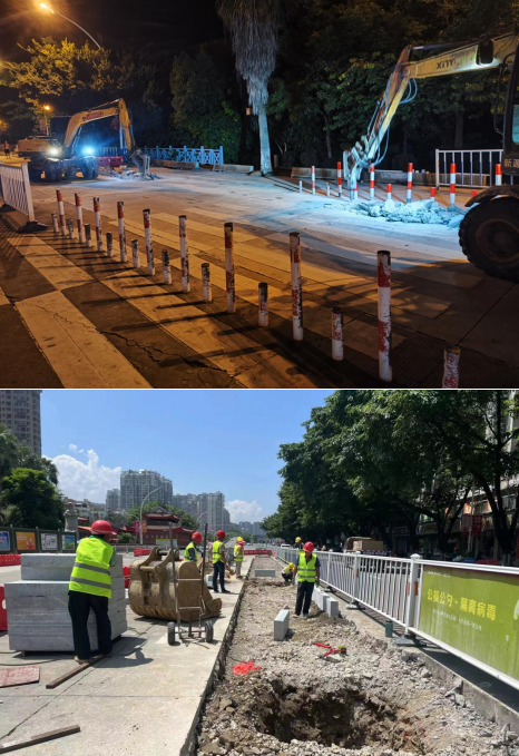 小溪路口地處老城區(qū)、蓮東片區(qū)、新城區(qū)交界處,群眾反映該路口交通標(biāo)識(shí)不清、行人過街不便等,存在安全隱患,為此,市委、市政府及市住建局等相關(guān)部門高度重視,決定由市政集團(tuán)所屬企業(yè)市城投公司對該路段實(shí)施提升改造,重點(diǎn)實(shí)施道路白改黑、雨污分流改造、綠化提升、道路標(biāo)識(shí)完善、交通安全設(shè)施提升等建設(shè),項(xiàng)目總投資約3500萬元。工程于7月下旬開工建設(shè),目前正在進(jìn)行混凝土病害處理、雨水管網(wǎng)開挖鋪設(shè)、路沿石安裝及各管線遷改等施工作業(yè)。